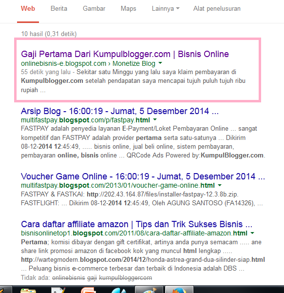 Pada kesempatan ini saya ingin berbagi tentang cara agar artikel kita dapat terindex oleh google dengan cepat. Pengalaman saya menggunakan tool ini adalah saya pernah membuat konten yang saya share di blog yang membahas tentang bisnis online, konten tersebut hanya terindex dalam waktu 55 detik saja. Ngak percaya? Ini dia screen shoot nya :